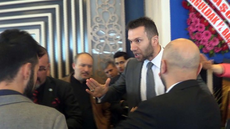 Bunun üzerine taraflar arasında tartışma çıktı. Salonda kısa süreli arbede yaşanırken, ara girenler, partilileri yatıştırdı.