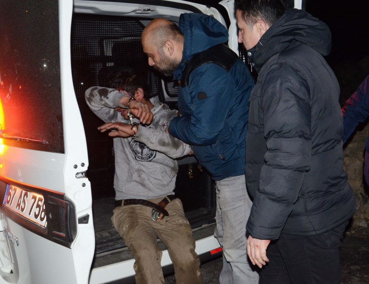 saklandığı yerden çıkartarak polis araçlarının yanına getirdi.