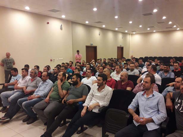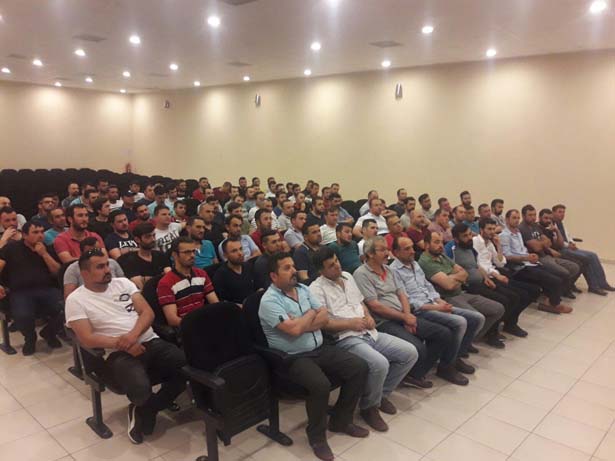Açıklama şöyle:Tat Metal A.Ş. ile devam eden Toplu İş Sözleşmesi müzakerelerinin ardından, ara bulucu sürecide geride kalmış, emek, alın teri ve başarının el ele yürüdüğü unutulup emek davamızdan geri adım atılması için Emekçi kardeşlerimize Mobbing'in ötesine geçilerek, Mübarek Ramazan günü alınteri dökerek evine ekmek götüre dava arkadaşlarımıza gözdağı verilmeye çalışılmıştır. Hiçbir zaman unutulmamalıdır ki; Bizler "Emekçinin terinin kurumadan ücretinin ödenmesi gerektiğini söyleyen Hz.Muhammet'i, Her fabrika bir kaledir diyen Mustafa Kemal Atatürk'ü ve emek mücadelemizde bizlere ışık olan Liderimiz Pevrul KAVLAK'ı örnek alarak kutsal mücadelemizde 200 bin arkadaşımızla bir yürek olarak acılarımızı bölüşüp azalttık, mutluluklarımızı paylaştık çoğaldı. Sermayenin silahını kuşanmış, Paranın gücüne aldanmış beyaz yakalılar unutmasınlarki; korku değil, ancak Emek Mücadelemize hırs, kendinize ah alıyorsunuz. Bugün bir araya geldiğimiz Tat Metal Emekçisi Kardeşlerimin gözlerinde de gördüğüm gibi; Tat Metal Emekçisi eninde sonunda; Kazanacak Kazanacak Kazanacak!..