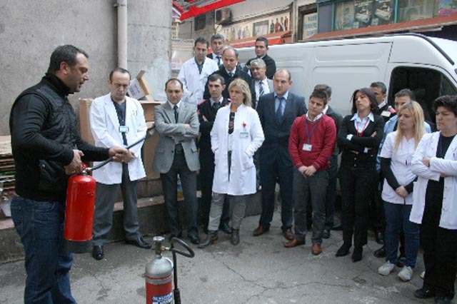 Ağız ve Diş Sağlığı Merkezi´nde görevli doktor, hemşire, teknisyen ve idari personel için yangın tatbikatı düzenlendi. Ağız ve Diş Sağlığı Merkezi´nin önünde yapılan tatbikatta, önce yangın söndürme tüplerinin kullanımıyla ilgili bilgi verildi. Daha sonra yangın söndürme tüpünün nasıl kullanılacağı uygulamalı olarak gösterildi. Bazı sağlık çalışanları da yangın söndürme tüpüyle yakılan ateşi söndürdü. Sağlık çalışanlarının başarılı olduğu gözlendi.
