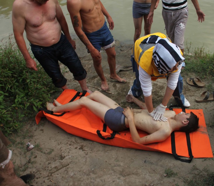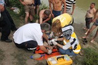 çocuğun cesedi bulundu. Sudan kıyıya çıkarılan Onay'a, sağlık görevlileri kalp