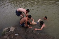 serinlemek gölete girdi. Onay'ın suda çırpındığını gören çocuklar çevredeki