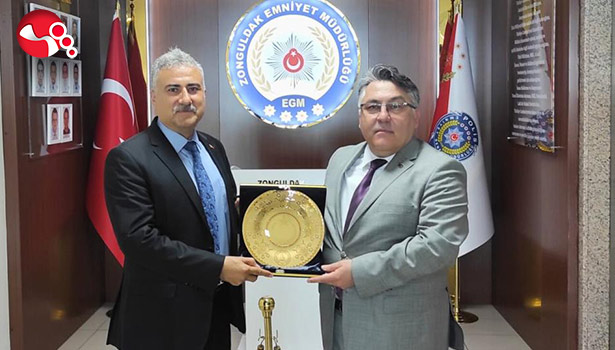 Zonguldak Bülent Ecevit Üniversitesi (ZBEÜ) Rektörü Prof. Dr. İsmail Hakkı Özölçer, Cumhurbaşkanı Recep Tayyip Erdoğan'ın imzasıyla Resmi Gazete'de yayımlanan atama kararına göre, Manisa İl Emniyet Müdürlüğüne atanan Zonguldak İl Emniyet Müdürü Fahri Aktaş'a veda ziyaretinde bulundu.