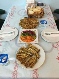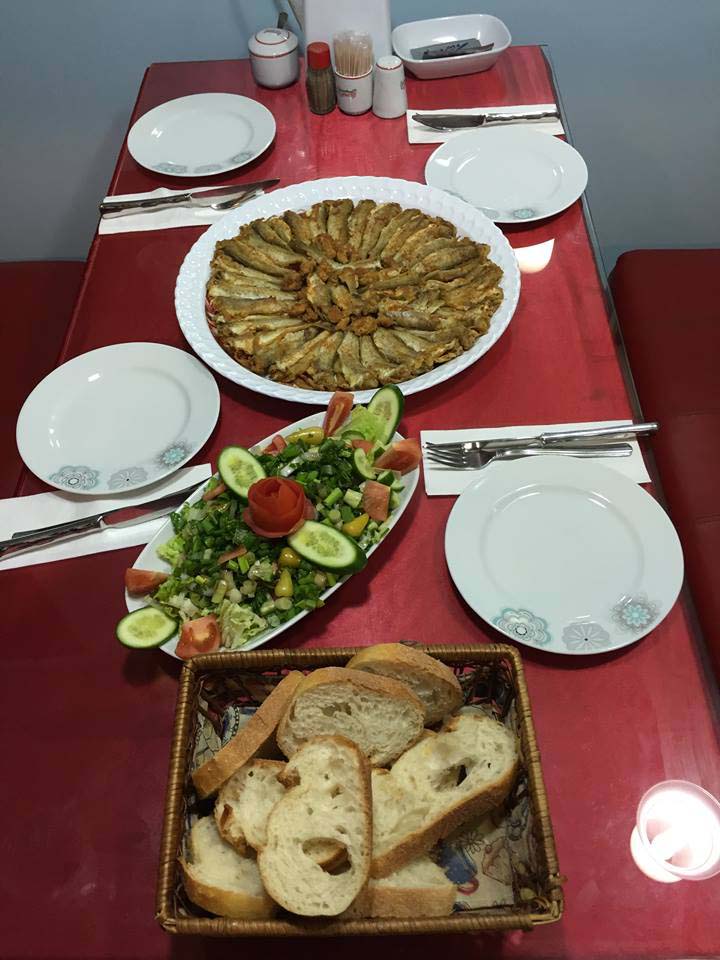 "Günlük taze hamsi, palamut, çinekop, mezgit, lüfer, kalkan, dil balığı, barbun, istavrit ve daha bir çok balık çeşidini bulabileceğiniz nezih ortamı, açık yada kapalı aile salonunda sizleri bekliyor.