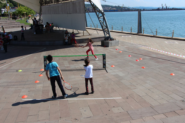 Türkiye Tenis Federasyonu'nun (TTF) ev sahipliği ve Türk Ekonomi Bankası'nın (TEB) sponsorluğunda Karadeniz Ereğli'de gerçekleştirilen ''TEB Sokak Tenisi'' etkinliğinde, çocuklar gönüllerince tenis oynadı.