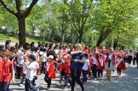 jimnastik ve dans grupları gösterilerini sundu. Öğrenciler şenlik alanında