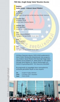 TED Kdz. Ereğli Koleji Vakfı Özel Okulları Genel Koordinatörü Ramazan Yıldırım, konuya ilişkin yaptığı açıklamada, ' Erdemir Genel Müdürü, TED Kdz.Ereğli Koleji Vakıf Yönetim Kurulu Başkanı Sedat Orhan ve TED Eğitim Derneği Genel Başkanı Selçuk Pehlivanoğlu, öğrenci velilerimiz ile söyleşi gerçekleştirmek amacıyla ilçemizde olacaklar.