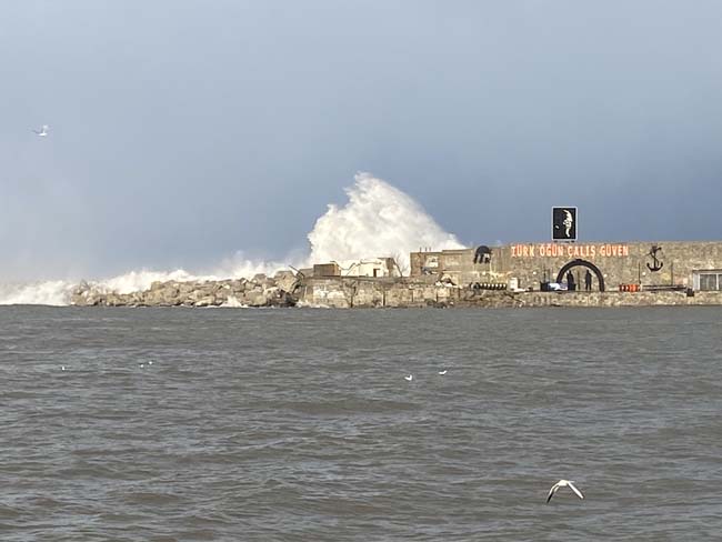 Zonguldak’ta sabah saatlerinde etkili olan fırtına nedeniyle limanda dalgalar mendirekleri aştı.