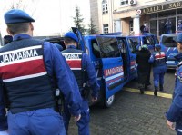 Jandarmadaki işlemleri tamamlanan 9 şüpheli, geniş güvenlik önlemleri altında