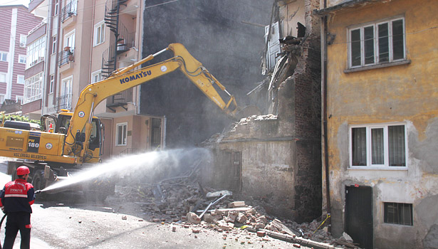 Sabah saat 07.30 sularında 3 katlı eski bir binadan parçalar koptuğu haberini alan Belediye Zabıta ve İtfaiye Müdürlüğü ekipleri, yaptıkları inceleme sonrasında binanın yıkılmak üzere olduğunu tespit etti. Bina sahipleri ile görüşen İtfaiye ekipleri, yıkım kararını uygulamak için onay aldıktan sonra iş makinesi ile yıkıma başladı. Yaklaşık 60 yıllık olduğu öğrenilen ahşap ve betonarme bina, ekiplerin 2 saat süren çalışması sonrasında tamamen yıkıldı. Çalışma öncesinde Kız Kapısı Caddesi trafiğe kapatılırken, zabıta ekipleri tarafından çalışma alanına güvenlik şeridi çekildi.