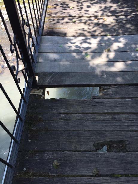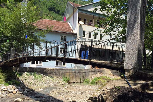 Zonguldak’ın Alaplı ilçesine bağlı Gümeli Belde’sinde belediye binası yanında tahtaları çürüyen köprü vatandaşlar için tehlike oluşturuyor.