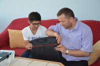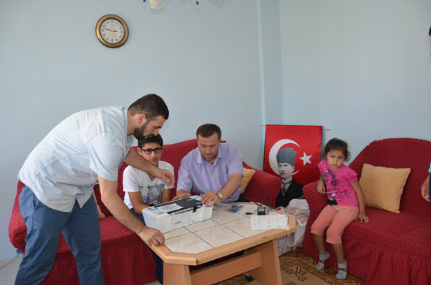 Korkut, "Emre kardeşimiz bu yıl ortaokulu başarıyla bitirdi. İnşallah lise öğrenimine devam edecek. Kardeşimiz görme engelli olduğu için karma eğitim göreceği için de kitap okuması ya da derslerine çalışabilmesi zor olacağından bu kardeşimize hayırseverlerin katkılarıyla dizüstü bilgisayar ve yazıcı hediye ettik. Bu derslerine çok büyük katkı sağlayacaktır. Çünkü bir başkasına ihtiyaç duymadan kendisi çalışabilecek. Eğitimine de çok güzel şekilde devam edeceğini düşünüyoruz. Kardeşimize ayrıca konuşabilen program olan cep telefonu hediye ettik. Hayırseverlerimize desteklerinden dolayı çok teşekkür ediyoruz" dedi.