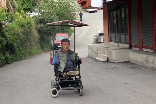 Kırılan sandalyeleri tamir ettirmeye çalıştığını ancak yeniden kırıldığını belirten Çetin "Araba yapalım diye deneme yaptık. Demirlerinden yaptık ama olmadı. Bir türlü olmuyor. Bize şimdi yardım olarak araba verdiler ama verdiği arabalarda benim gücüm onlara yetmedi. Kendiliğinden kırıldılar. Gene onlardan çok teşekkür ederim. Ama benim istediğim yardım olarak şöyle küvetli bir araba istiyorum. Beni taşıyabileceği, çekebileceği bir araba istiyorum onlardan. 550 lira gibi aylık bir ücret alıyorum yardım olarak. Aldığım ücretle simit satarak günlük kazancımı çıkartıyorum.