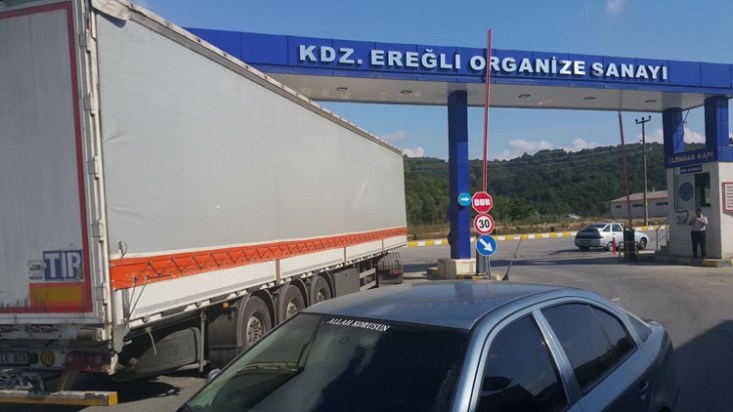 Zonguldak'ın Ereğli ilçesi Hamzafakıllı mahallesinde oturan bir kişi kamyon ve uzun araçların geçişinden duyduğu rahatsızlığı anlatmak için tek kişilik eylem yaptı.