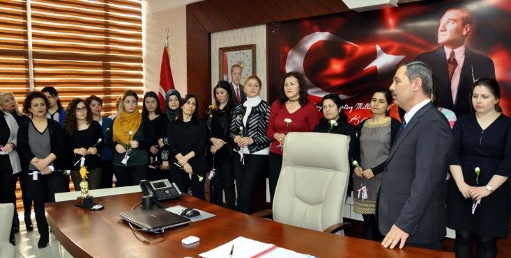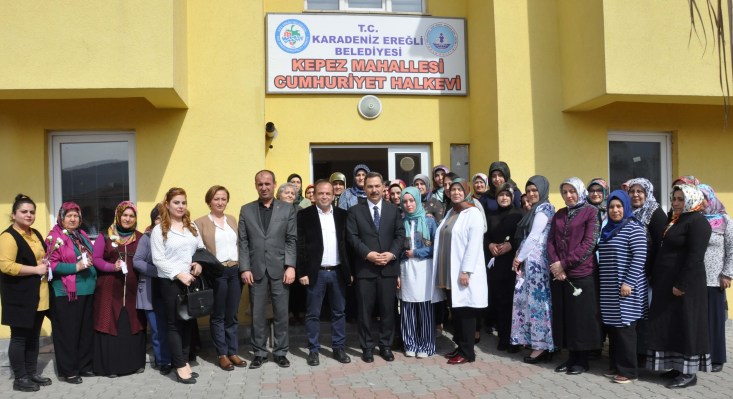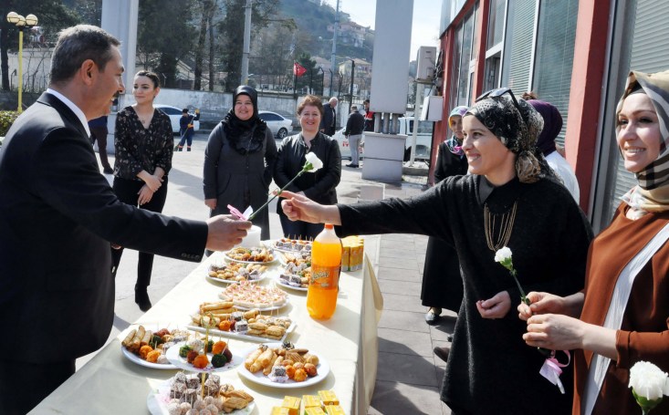 Karadeniz Ereğli Belediyesi Başkanı Hüseyin Uysal, '8 Mart Dünya Kadınlar Günü' dolayısıyla belediyede çalışan ve Cumhuriyet Halk Evleri'nde kurs gören bayanlara tek tek karanfil vererek günleri kutladı.