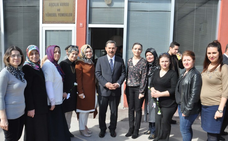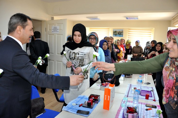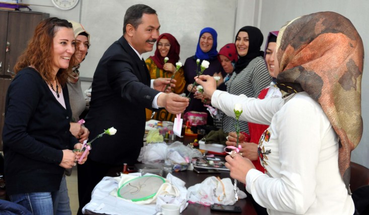 Başkan Uysal, Belediye Kültür ve Sosyal İşler Müdürlüğü bünyesinde hizmet veren Cumhuriyet Halk Evleri'nde resim, el işleri, aşçılık, okuma yazma gibi kurslarda eğitim gören bayanların günlerini kutlayarak sergileri gezdi.