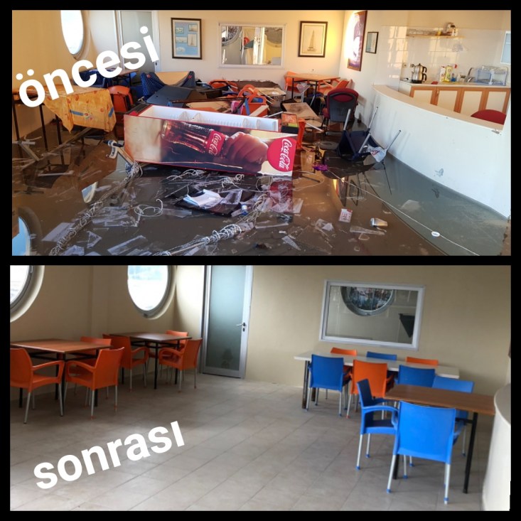 Fırtına sonrasında hasar gören denize iniş alanını düzenleyerek bize destek olan Kdz.