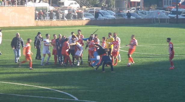 Zonguldak Süper Amatör Lig' de (SAL) karşı karşıya gelen Akınspor 10 Temmuz spor karşılaşmasında futbolcular birbirlerine girdi. Polis oyuncuları Cop ve biber gazı kullanarak ayırabildi. Ereğli Beyçayırı stadyumunda Süper Amatör Lig' de (SAL) karşı karşıya gelen Akınspor 10 Temmuz spor karşı karşıya geldi. Karşılaşmanın 87. dakikasına kadar 1-0 üstün oynayan Akın spor da 5 numaralı oyuncu Erdi, rakibine yaptığı faul sonrasında ikinci sarı kartı görerek kırmızı kartla oyun dışında kaldı. Gördüğü kart sonrasında hakeme tepki gösteren Erdi, faul yaptığı rakip oyuncunun üzerine doğru koşarak vurmak isteyince diğer oyuncularda kavgaya karıştı. Bir anda saha içi karışırken, futbolcular birbirlerine tek tokat girdi. Polis, kavga eden oyuncuları ayıramayınca cop ve biber gazı kullanarak oyuncuları ayırmaya çalıştı. Bazı yöneticiler ise aldıkları darbe ile yere düştü. Sahada ki kavganın sona ermesinin ardından 10 Temmuz sporlu oyuncularla Akın spor taraftarları arasında gerginlik yaşandı. Bazı oyuncular sinkaflı sözlerle Akın spor taraftarlarına tepki gösterdi Polisin bir kez daha araya girmesi ile 10 Temmuz sporlu oyuncular sahadan çıkarıldı. Maçtaki olaylardan dolayı hakemler sahayı terk ederken, maçın orta hakemi tarafından maç tatil edildi. Taraftarların dağılması ile birlikte oyuncular da sahadan ayrıldı.