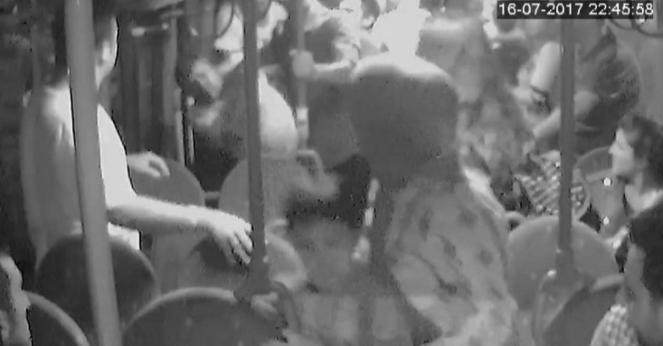 Edinilen bilgiye göre olay, önceki gün akşam saatlerinde şehir içinde yolcu taşıyan özel halk otobüsünde meydana geldi. Otobüse binen genç, yanındaki kız arkadaşına bakarak tacizde bulunduğunu ileri sürdüğü yan koltuktaki yolcuya tepki gösterdi. Çıkan tartışma kısa sürede kavgaya döndü. Genç ve yanındaki erkek arkadaşı, diğer kişiyi tekme tokat döverek dışarıya çıkardı. Otobüs dışında da süren kavgada otobüs içinde bulunan diğer sürücüler korku dolu anlar yaşadı.