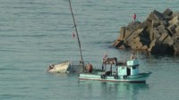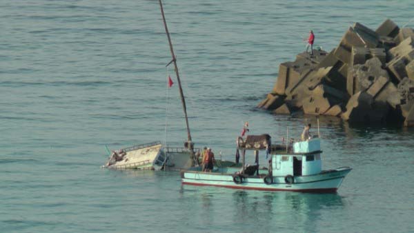 gömülen tekne, kıyıda durumu gören bir balıkçının teknesine bağlanarak limana