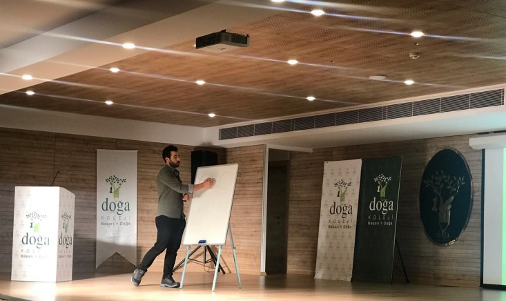 Öğrencilerin ve velilerin yoğun ilgisini çeken bu seminer söyleşi ile devam etti. Söyleşinin sonunda Doğa Koleji yönetimine teşekkür eden Psikolog Savaş Kurt'a Anaokulu ve İlkokul Müdürü L. Güvenç Özveren Doğa Koleji rozeti taktı ardından Savaş Kurt'a çiçek ve plaketini takdim etti.