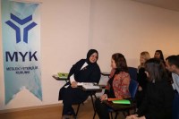 salonlarını da gezerek burada sıraya oturup bir süre eğitim gören personel ile