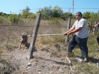 Tarlasına giden Çömlekçi Köyü Muhtarı tellere takılmış vaziyette bir kurdun olduğu fark etti.