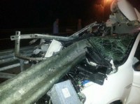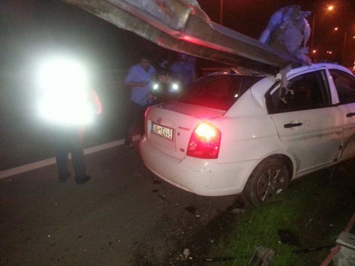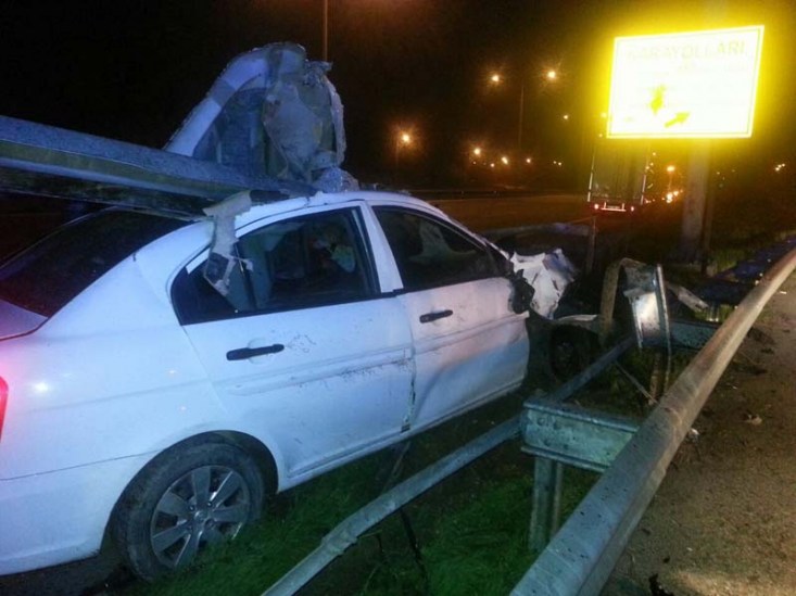 TEM Otoyolu'nun Hendek geçişinde önceki akşam meydana gelen trafik kazasında, hırsızlık suçundan arandıkları belirlenenMetin Ermişve arkadaşıMurat Bay'ın içinde bulundukları otomobil bariyerlere çarptı. Bariyerin ok gibi saplandığı otomobilin ön tarafında oturan 30 yaşındakiMetin Ermiş'in kafası koparken, otomobili kullananMurat Bay kaçtı.
