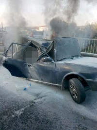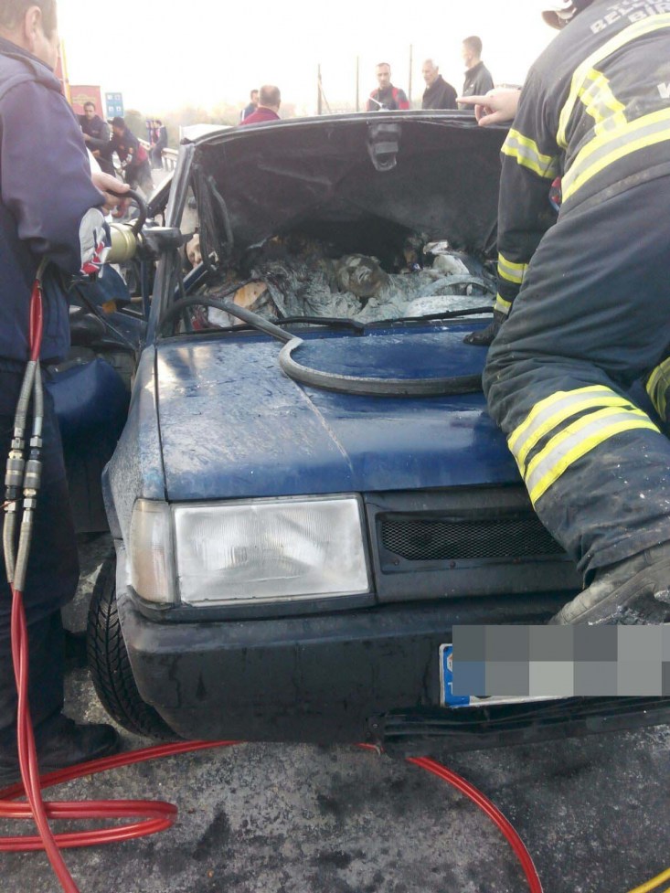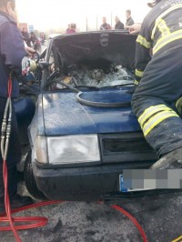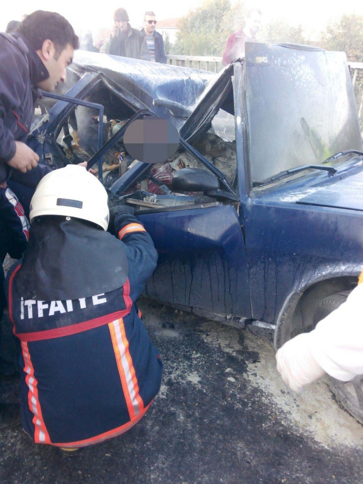 TEM Otoyolu Düzce geçişinde meydana gelen trafik kazasında, TIR'ın arkadan çarptığı otomobilde bulunan 2 kişi, alev alan araçta yanarak hayatını kaybetti.