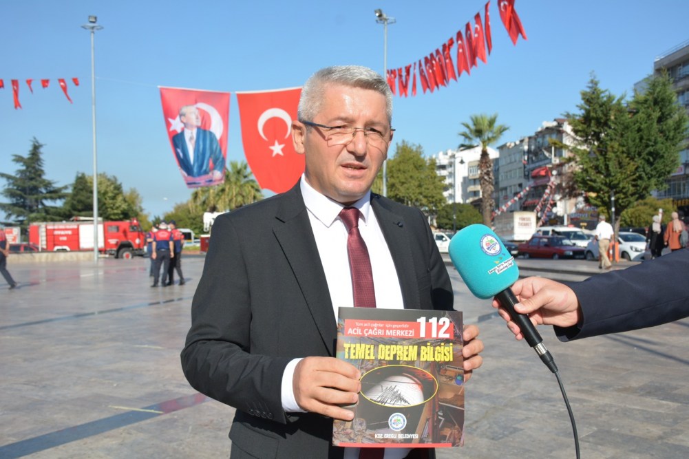 “Bilindiği üzere ülkemiz coğrafi konumundan dolayı deprem kuşağında yer almaktadır. Kdz. Ereğli Belediyesi İtfaiye Müdürlüğü olarak halkımızı olası depremlere karşı bilinçlendirmek adına 20 bin “Temel Deprem Bilgisi’’ kitapçığı hazırladık. 31 Mahallede 66 noktayı acil durum toplanma alanı belirledik ve bu alanların hepsine tabelalar astık. Bu kitapçığın son kısmında ilçemize ait afet acil durum toplanma yerlerini gösteren kare kodlar bulunmaktadır. Bulunduğunuz mahalleye ait kare kodlardan birini cep telefonunuza okutarak size en yakın afet acil durum toplanma yerini öğrenebilirsiniz.”