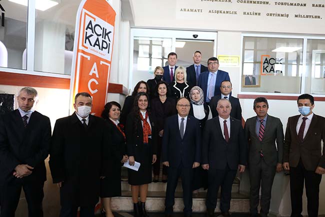 Zonguldak Valiliği’nde yaklaşık yıldır hizmet veren Açık Kapı’nın 5’inci hizmet yılı nedeniyle Zonguldak Valisi Mustafa Tutulmaz ve beraberindekiler ziyaret ederek Açık Kapı Şube Müdürü Nurten Karadağ’dan bilgiler aldı.
