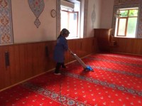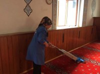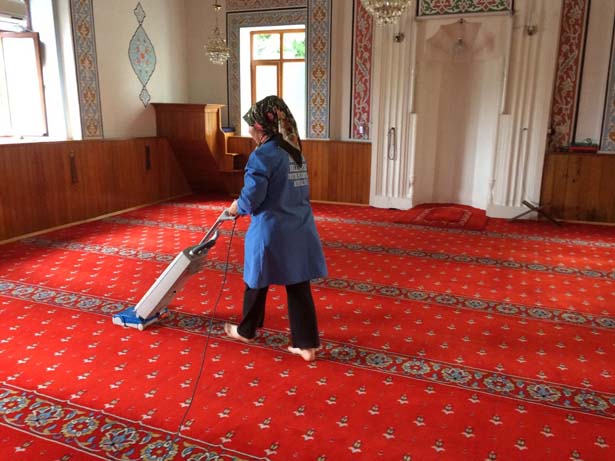 Akçakoca Belediyesi Destek Hizmetleri Müdürlüğü ekipleri tarafından camilerin temizliği yapılıyor.