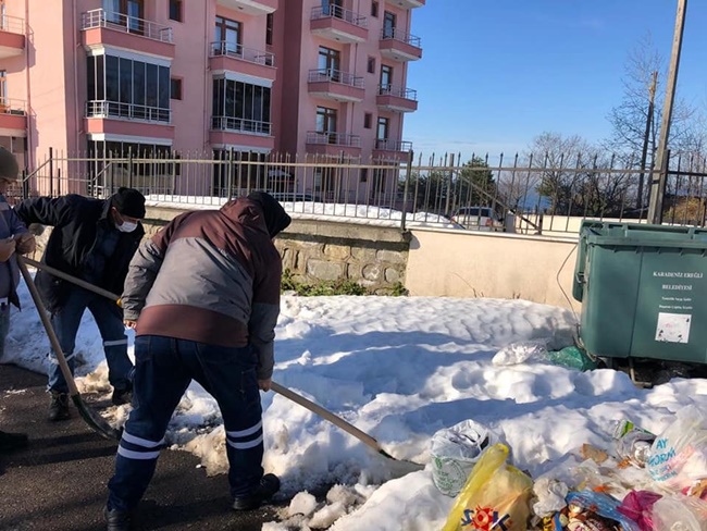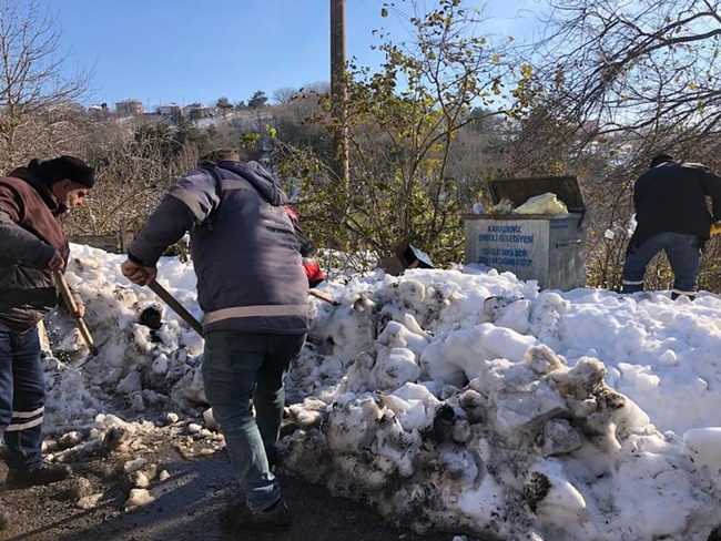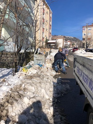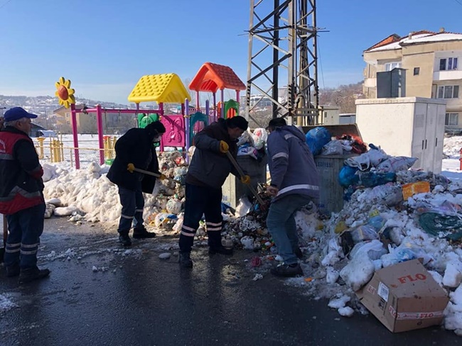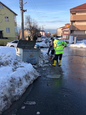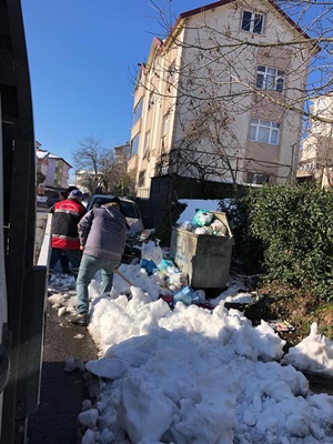 Ana yolların temizlenmesiyle birlikte yolun kenarlarında da biriken kara kütlelerini temizleyen ekipler hafta sonu da çalışmalarına devam ediyor. Yoğun kar yağışı sebebiyle çöp kamyonetlerinin giremediği mahallelerde biriken çöpleri de toplamaya devam eden ekipler, vatandaşlarının mağduriyetlerini gidermek için hafta sonu sokağa çıkma kısıtlamasında çalışmalarına devam ediyor.