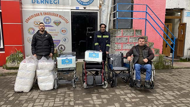 Zonguldak Belediyesi'nde 13 yıldır temizlik görevlisi olarak görev yapan Abdurrahman Yılmaz (56) hesabına yatan banka promosyon ücretiyle anlamlı bir işe imza attı. Yılmaz, Çatalağzı Engelliler Derneği Başkanı Özcan Albas’a ulaşarak, bir engelli vatandaşa tekerlekli sandalye yardımı yapmak istediğini iletti. Ardından Başkan Albas’ın aileyi bulmasının ardından bugün temizlik görevlisi Yılmaz, 3 bin TL değerindeki tekerlekli sandalyeyi alarak Çatalağzı Engelliler Derneği Başkanı Özcan Albas’a teslim etti.