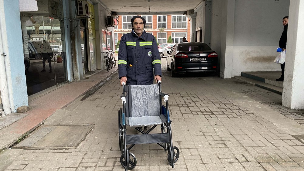 Zonguldak’ta 13 yıldır temizlik görevlisi olarak görev yapan 56 yaşındaki Abdurrahman Yılmaz, promosyon ücretiyle bir engelli vatandaşa tekerlekli sandalye hediye etti.