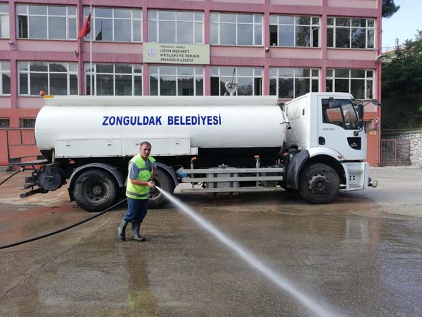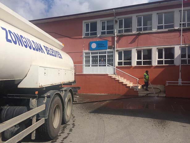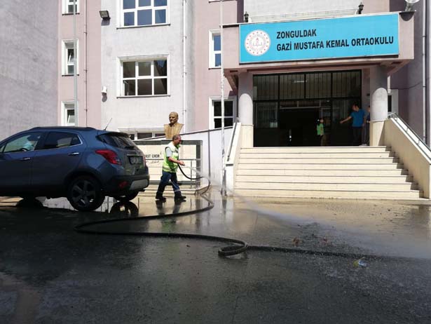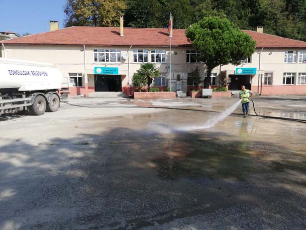 Zonguldak Belediyesi Temizlik İşleri Müdürlüğü, Park Bahçeler Birimi ve İtfaiye Müdürlüğü işbirliğince, okul çevrelerinde temizlik çalışmaları başlattı. Öğrencilerin, yeni eğitim/öğretim yılına temiz ve sağlıklı bir ortamda girmelerini sağlamak için başlatılan temizlik programı ile öncelikle ilk ve ortaokulların bahçeleri ve çevreleri yıkanarak, okul çevresinde yer alan yabani otların biçilmesi ile devam etti.