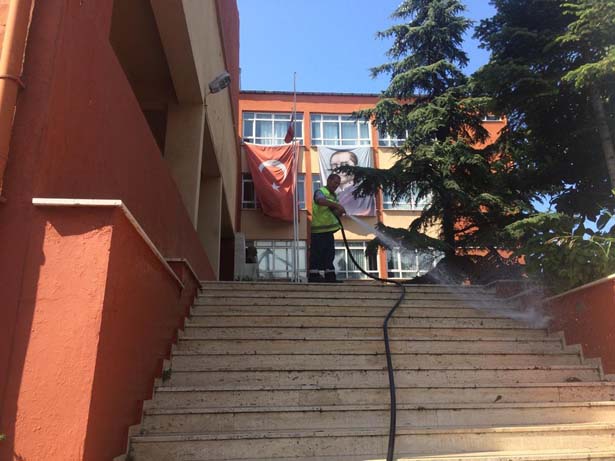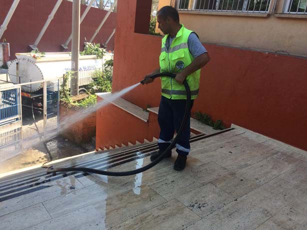 2019/2020 eğitim öğretim yılı başında okul bahçelerinde ve çevrelerinde temizlik çalışmalarını sürdüren ekipler, tüm okul bahçelerini ve çevrelerini yıkama çalışması yaparak, öğrencilerin yeni döneme tertemiz okullarda girmeleri için büyük çaplı çalışma başlattı.