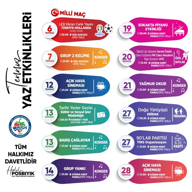 Temmuz 2024 yaz ayı etkinlikleri belli oldu...