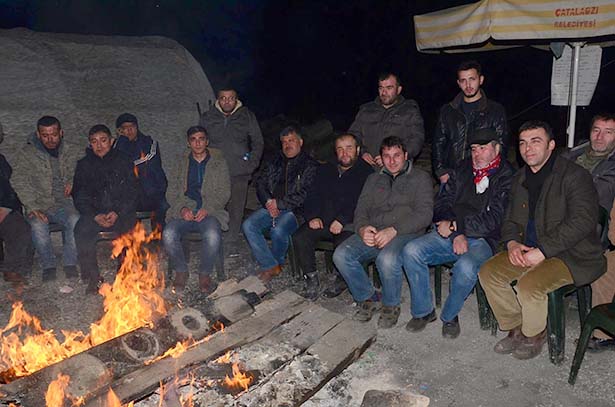 sürdüren işçiler, soğuk havada yaktıkları ateşin etrafında ısınmaya çalışıp,