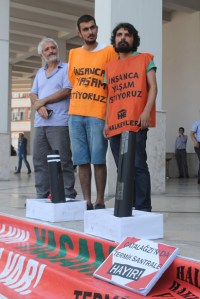 Ahmet Buğra Kalender ile Muzaffer Duysal mizahi bir gösteri sunarak halkı termik santral konusunda uyardı. Tiyatro gösterisinin ardından eylemciler yanlarında getirdikleri termik santral maketlerini "Termik santrali çok istiyorsanız buraya kurun" diyerek valilik binası önüne koydular. Daha sonra 20 kişilik grup ellerindeki "Halkın yaşama hakkı var. Termik santrallere hayır" yazılı pankartlarla basın açıklaması gerçekleştirdi.