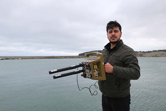 Jandarma Genel Komutanlığı ile ortaklaşa sürdürülen çalışmada Zonguldak'ta eğitimler veren Nurettin Akpınar, bir kilometre menzili olan 50 metre su ve toprak altı tüm nesneleri görüntüleyebilen cihazın 70 ülkeye ihraç edildiğini aktardı. Cihazın tamamen yerli ve milli bir ürün olduğunu aktaran Nurettin Akpınar, "Cihazlarımız bir kilometre menzili olan 50 metre su altı ve toprak altı tüm nesneleri görüntüleyebilen bir cihazdır. Cihazlarımız en son yüzyılın felaketi ile adlandırdığımız tüm deprem bölgelerinde Jandarma Genel Komutanlığı vasıtasıyla kullanılmıştır. Bu cihazlarımız Jandarma Genel Komutanlığı'nda olup operasyonlarda sığınak, mühimmat, patlayıcı bu tarz arama faaliyetlerinde faaliyet sağlıyor. Cihazımız suda bütün nesneleri elektro manyetik dalgalar göndererek tespit edebiliyor. Aradığımız nesneler ne ise o da bizim ekranımıza yansıtılıyor. Cihazımız yüzde 100 yerli ve milli cihazdır. Yazılımı da dahil yerli ürünümüzdür. Şu anda toplamda 70 ülkeye yakın ihracatımız var. Her geçen gün yeni versiyonları çıkartıyor firmamız. Her geçen gün daha üst versiyonları çıkıyor" diye konuştu.