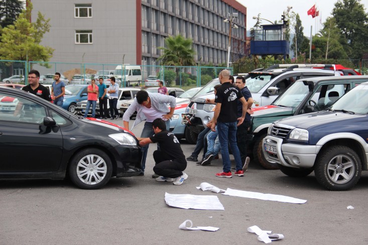 üyeleri Türk bayrakları ile donattıkları araçlarının üzerine 'Önce vatan', 'Ne