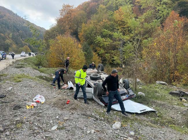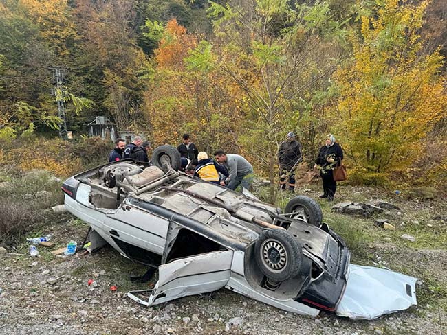 Zonguldak'ta alışverişten dönen çift takla atan otomobillerinden yaralı olarak kurtarıldı.