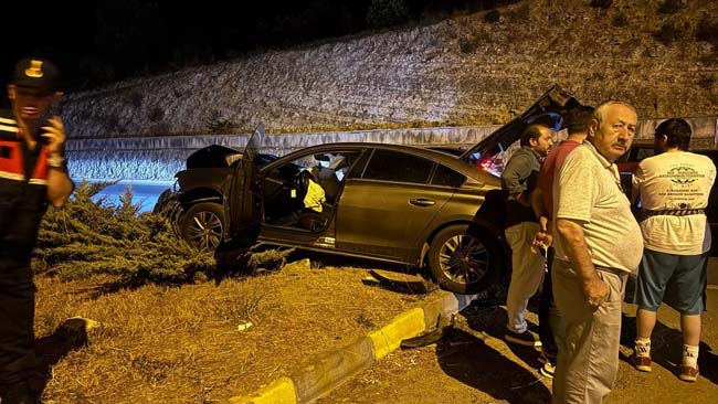 Ters yola giren otomobil, karşı yönden gelen başka araca çarptı