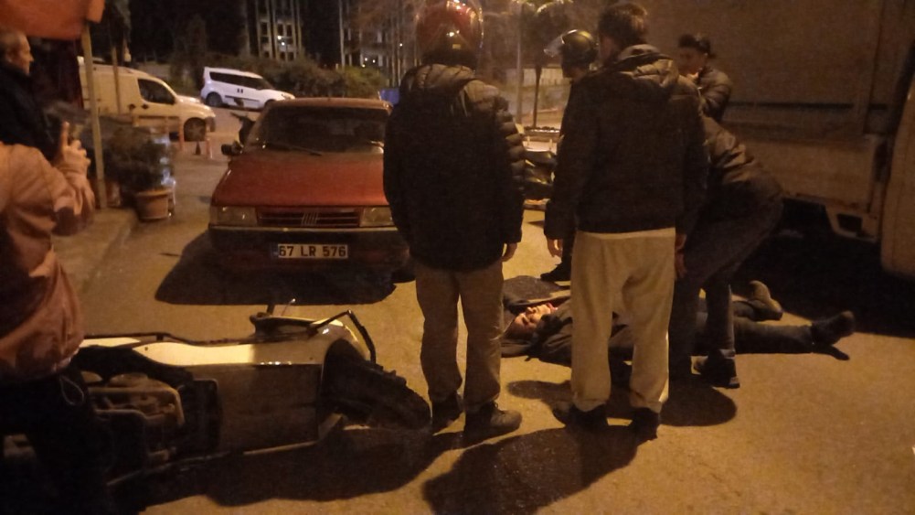 İddiaya göre, ters yönde ilerleyen 67 ABP 121 plakalı motosiklet sürücüsü H.O.A. karşısından gelen 67 LR 576 plakalı otomobili fark edince panik yaparak motosikleti devirdi. Devrilen motosiklet önce duran araca sonra ise ana yoldan gelen otomobilin önüne düştü. Kazada yaralanan H.O.A. için 112 Acil Çağrı Merkezine haber verildi. Kısa sürede olay yerine gelen sağlı ekipleri H.O.A. yaptıkları ilk müdahalenin ardından hastaneye kaldırıldı. Polisin olayla ilgili soruşturma başlattığı öğrenildi.