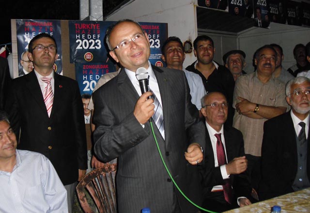 seçim öncesi Ereğli´de ki tersanelere iş bulmak için dünyanın dört bir yanını gezeceğini söyleyen Ak Pari Zonguldak Milletvekili Prof. Dr. Ercan candan eline çantayı aldı.