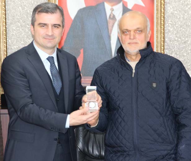 Dernek Başkanı Murat Bıyık ve yönetimi, Belediye Başkanı Cüneyt Yemenici'ye Merkez cami etrafı düzenleme çalışmalarından dolayı çok teşekkür ederek, hediye takdiminde bulundu.