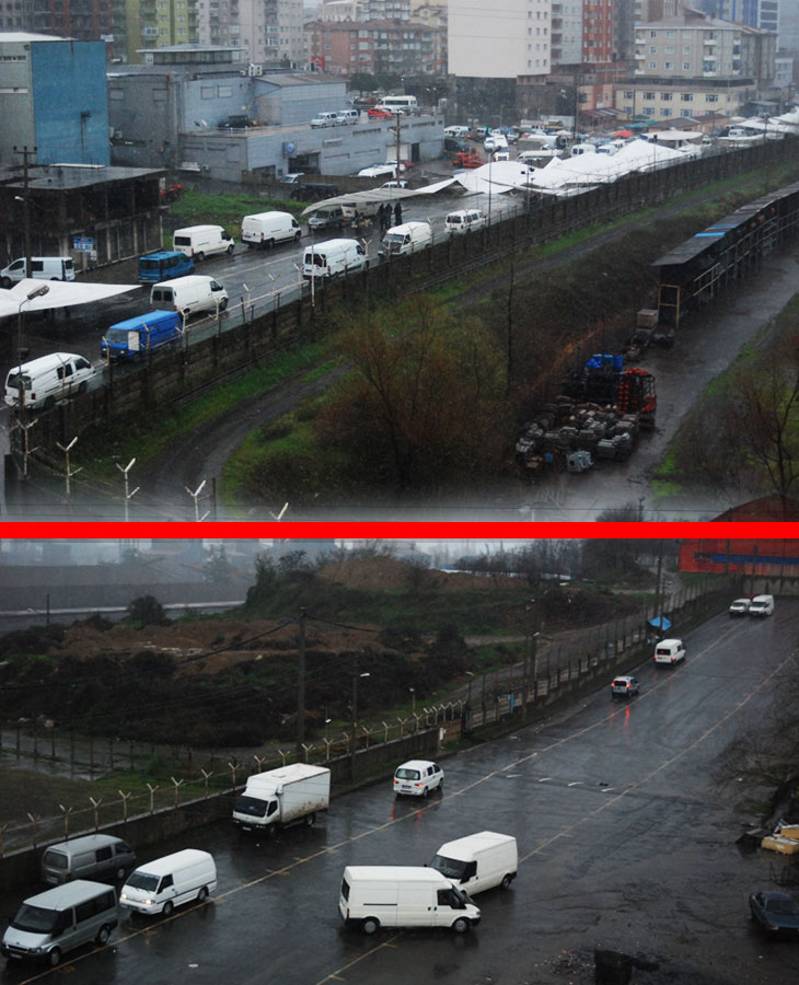 Dün akşam soğukla birlikte etkisini arttıran sağanak yağış, bu gün de (23.03.2013) etkisini hissettiriyor. Her cumartesi günü Devrek Yolayrımından Suat Başol Caddesi boyunca kurulan Cumartesi Pazarı'nın esnafı, hava muhalefeti yüzünden tezgahlarını açamadı. Mal yüklü araçlarının içinde saatlerce havanın düzelmesini bekleyen esnaf, kara kara düşünüyor...
