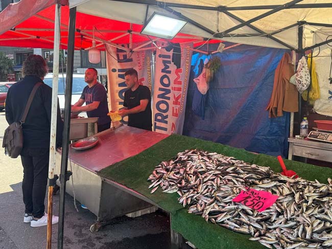 Tezgahlarda bol bulunan istavritin fiyatında düşüş yaşandığı bildirildi. Beybeyoğlu, "Kaç günden beri istavrit balığı 250 lira civarındaydı. Biraz bol geldiği için iki günden beri 150 liraya satıyoruz. Halkımızı balıksız bırakmıyoruz yani. Bizde balık var" ifadelerini kullandı.