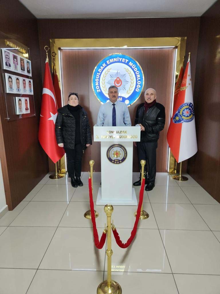 Türk Hava Kurumu (THK) Zonguldak Şube Başkanı Nihat Aygün ve Şube Saymanı Elif Şenyılmaz İl Emniyet Müdürü Fahri Aktaş’a nezaket ziyaretinde bulundu.